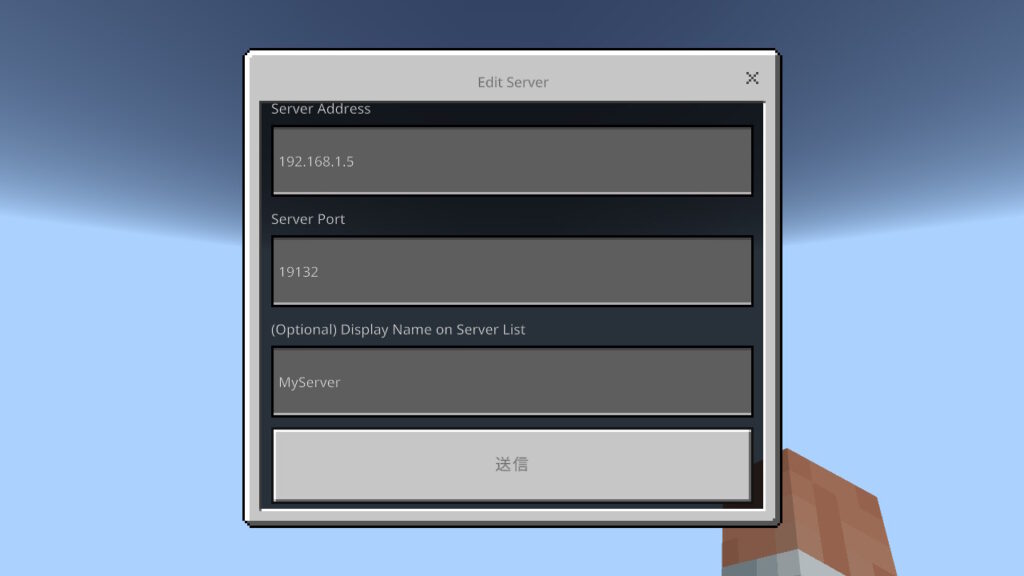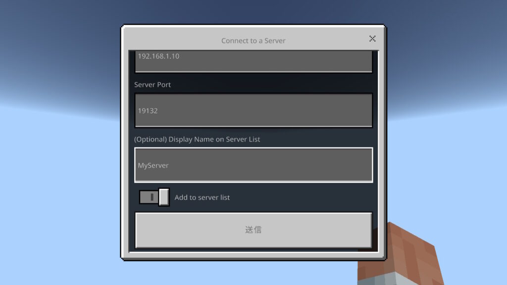 ここでは自宅に構築したマイクラサーバー(192.168.1.10)へのアクセス方法を例にして手順を解説します。