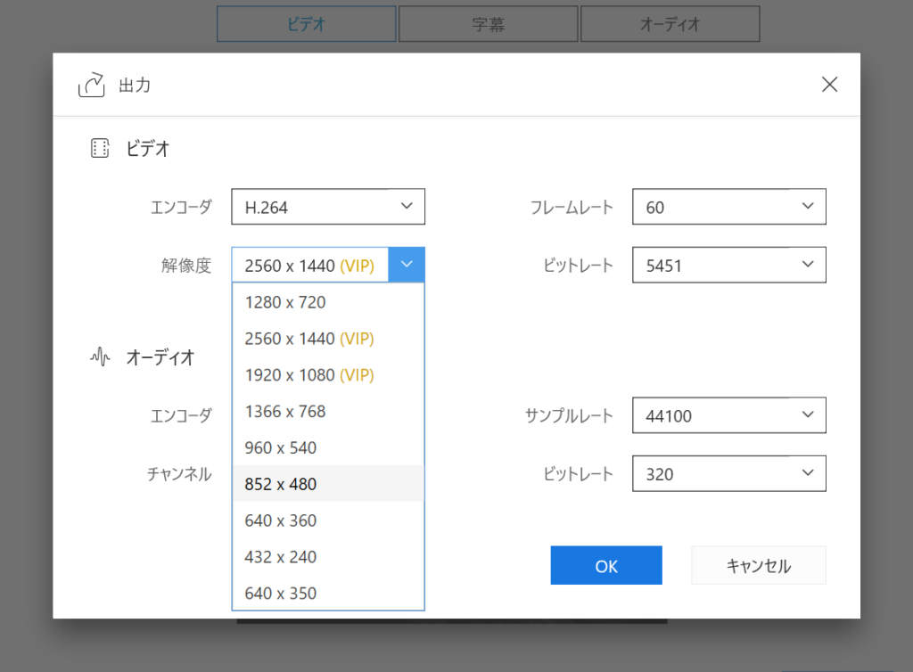 動画の出力に関してですが、4K(2160P)の書き出しには対応していませんでした。書き出しは最大でWQHD(1440P)まで対応しています。